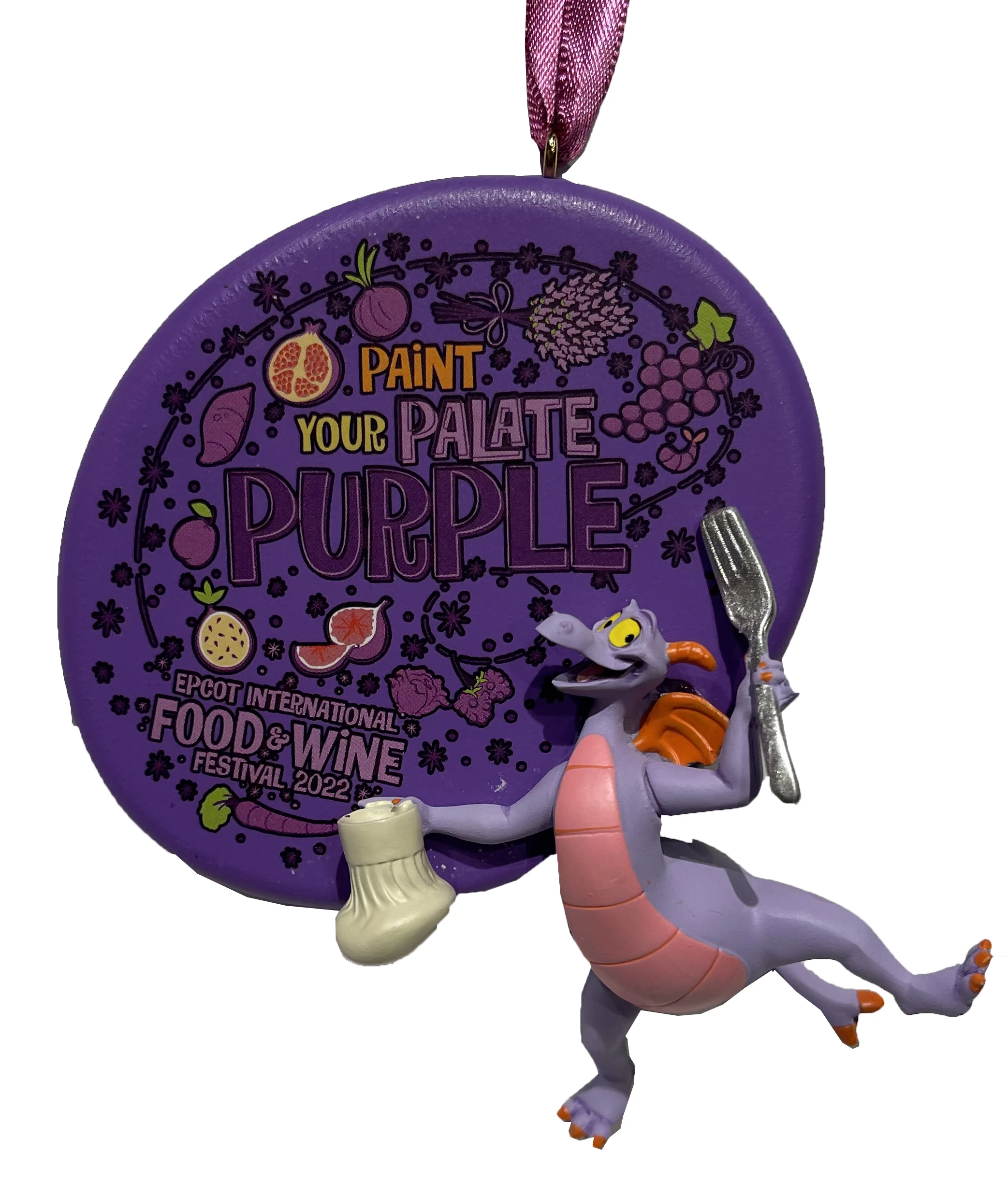 Hang a reminder of your visit to the Epcot International Food and Wine Festival 2022 with this Figment Ornament.