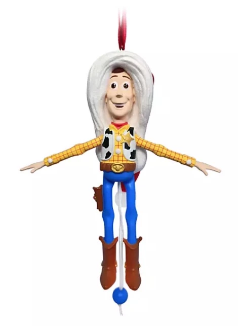 Woody trades his cowboy hat for a Santa hat as he gets in the holiday spirit with this fun ornament. Pull down on the string to see Woody’s arms and legs rise up!